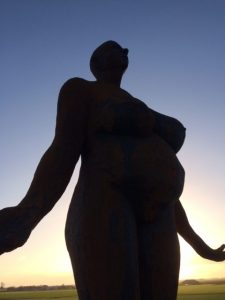 Die Drachtener Künstlerin arbeitet noch an einer zweiten, dünnen Frau. Dieser hier wird nächstes Jahr neben der fetten Frau stehen. Beide haben keinen Namen..
