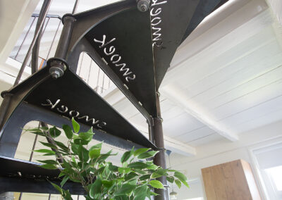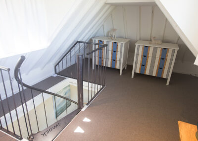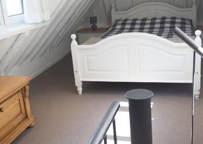 In the kitchen and utility room you can use the dishwasher, washing machine and dryer. The special staircase leads to the first floor, where a small and cozy bedroom with a double bed is made. In the rear bedroom with the characteristic beamed ceiling is the second double bed.